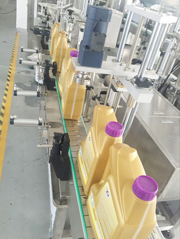潤(rùn)滑油灌裝旋蓋一體機(jī)為活塞式計(jì)量方式。計(jì)量范圍為1升-5升,離合式旋蓋結(jié)構(gòu),確保旋蓋合格率高,不傷蓋。本設(shè)備為灌裝旋蓋一體機(jī),結(jié)構(gòu)緊湊,性價(jià)比高。該型號(hào)灌裝機(jī)適用于醫(yī)藥、日化、食品、農(nóng)藥及特殊行業(yè),是對(duì)酒精等液體進(jìn)行灌裝的理想設(shè)備。